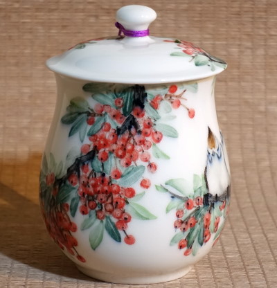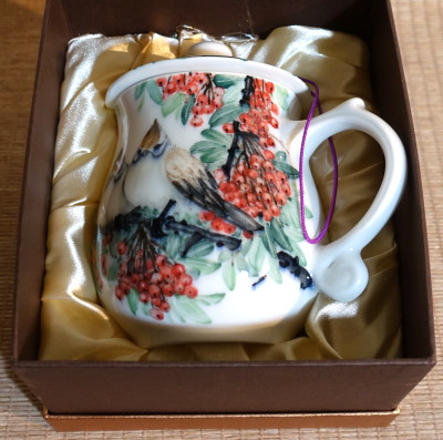 ◎創作者的小檔案: 鄉土女畫家【黃禎 Huang Cheng】文靜少語多識。長期費時耗資於考查國內外各地山水、生態美景,家父是台北市中山北路:知名的字畫藝品商,自幼常見大師字畫耳濡目染。「黃禎」早期曾事師書畫大師「李秀奎」,長期專攻「工筆及寫藝」花鳥山水畫。二十餘年來;將豐碩的國畫功力,綻放於陶瓷創作。每件作品均耗盡心力、構圖變化和協,用色層次豐富。近兩年已受國內外重量級政商人士鑑賞收藏。格調極高的精心彩繪創作品,每件作品構圖及用色充滿生命活力。同系列內每件作品構圖及用色亦不相同,每件作品皆獨一無二;構圖絕不重複,絕對值得您的鑑賞及典藏。 ◎作品特別說明: 1‧可加鑽雕落款2~6個漢字或 6~10個英文字母。 2‧杯蓋附強韌彩色精美繩結。(若不需要;可剪除) 3‧附厚禮專用禮盒:硬質金橙螢光上蓋‧深咖啡色盒身‧ ‧‧‧內加象牙色軟布及保護海棉。 4‧附鶯歌陶瓷專用提袋。 5‧鶯歌高級全瓷杯,經1250度極高溫窯燒;可微波加熱。 6‧本作品無法拷貝量產。 7.作品自拍,各家電腦色彩差異。我們力求精確敬請見諒! |