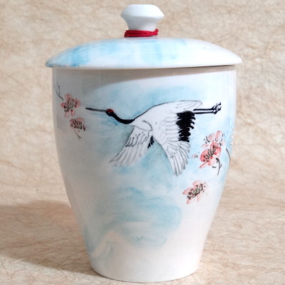 ◎創作者的小檔案: 鄉土女畫家【黃禎 Huang Cheng】文靜少語多識。長期費時耗資於考查國內外各地山水、生態美景,家父是台北市中山北路:知名的字畫藝品商,自幼常見大師字畫耳濡目染。「黃禎」早期曾事師書畫大師「李秀奎」,長期專攻「工筆及寫藝」花鳥山水畫。二十餘年來;將豐碩的國畫功力,綻放於陶瓷創作。每件作品均耗盡心力、構圖變化和協,用色層次豐富。近兩年已受國內外重量級政商人士鑑賞收藏。格調極高的精心彩繪創作品,每件作品構圖及用色充滿生命活力。同系列內每件作品構圖及用色亦不相同,每件作品皆獨一無二;構圖絕不重複,絕對值得您的鑑賞及典藏。 ◎作品特別說明: 1‧可加鑽雕落款2~6個漢字或 6~10個英文字母。 2‧杯蓋附強韌彩色精美繩結。(若不需要;可剪除) 3‧附厚禮專用禮盒:硬質金橙螢光上蓋‧深咖啡色盒身‧ ‧‧‧內加象牙色軟布及保護海棉。 4‧附鶯歌陶瓷專用提袋。 5‧鶯歌高級全瓷杯,經1250度極高溫窯燒;可微波加熱。 6‧本作品無法拷貝量產。 7.作品自拍,各家電腦色彩差異。我們力求精確敬請見諒! |