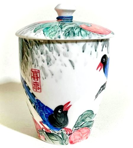 鄉土女畫家【黃禎 Huang Cheng】文靜少語多識。長期費時耗資於考查國內外各地山水、生態美景,家父是台北市中山北路:知名的字畫藝品商,自幼常見大師字畫耳濡目染。「黃禎」早期曾事師書畫大師「李秀奎」,長期專攻「工筆及寫藝」花鳥山水畫。二十餘年來;將豐碩的國畫功力,綻放於陶瓷創作。每件作品均耗盡心力、構圖變化和協,用色層次豐富。近兩年已受國內外重量級政商人士鑑賞收藏。格調極高的精心彩繪創作品,每件作品構圖及用色充滿生命活力。同系列內每件作品構圖及用色亦不相同,每件作品皆獨一無二;構圖絕不重複,絕對值得您的鑑賞及典藏。