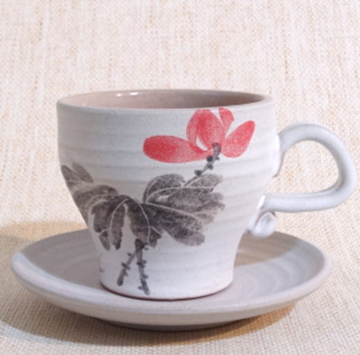 ◎ 鶯歌 手拉坏彩陶咖啡杯〝黃禎大師〞精心彩繪題字。