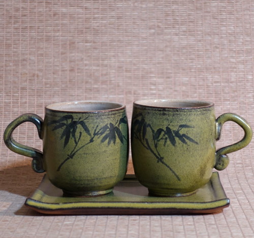 杯高約7.5cm*全滿約200cc*盤長約15cm(手拉坏無固定尺寸) |