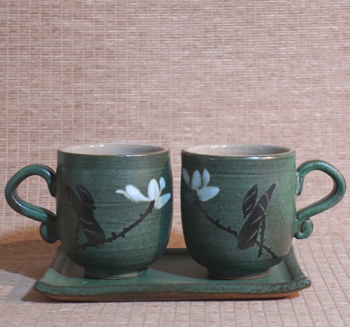 杯高約7.5cm*全滿約200cc*盤長約15cm(手拉坏無固定尺寸) |