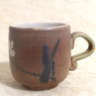 ◎ 鶯歌 手拉坏彩陶杯〝黃禎大師〞精心彩繪題字。