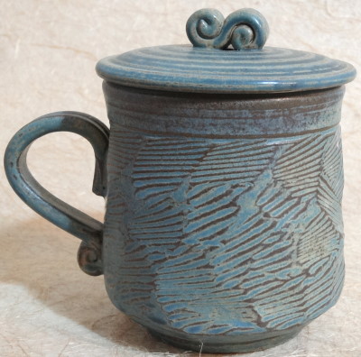 茶杯、刀削杯/灰藍 手拉坏陶藝杯 - C0310
